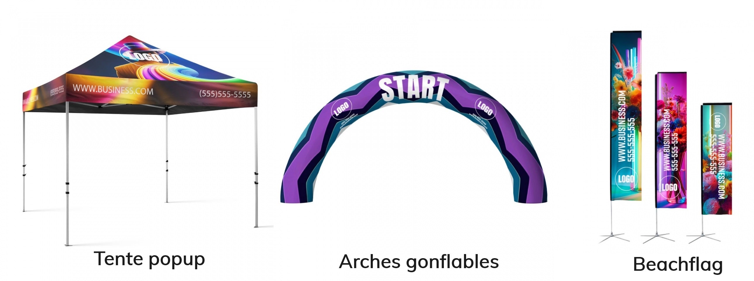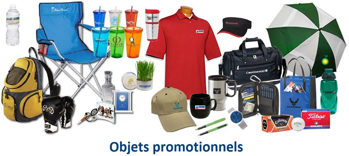 Vous cherchez un moyen créatif et efficace d'attirer l'attention des gens et de laisser une impression durable, ne chercher pas plus loin! Des T shirts, Polos, Chemises, tasses aux sous verre, porte clés en passant par les stylos et les clés USB ou de tentes promotionnels, Bannières, arches gonflables pour toutes vos activités.