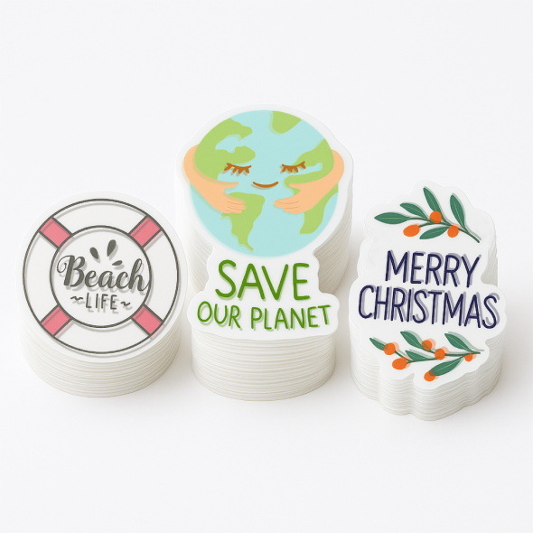 .002 Décalques Formes Spéciales Polyester Transp. / endos adhésif standard pour usage intérieur de longue durée et usage extérieur durée moyenne (1 à 4 pouces carrés) Quadrichromie numérique haute résolution, blanc inclus, toutes marges perdues.