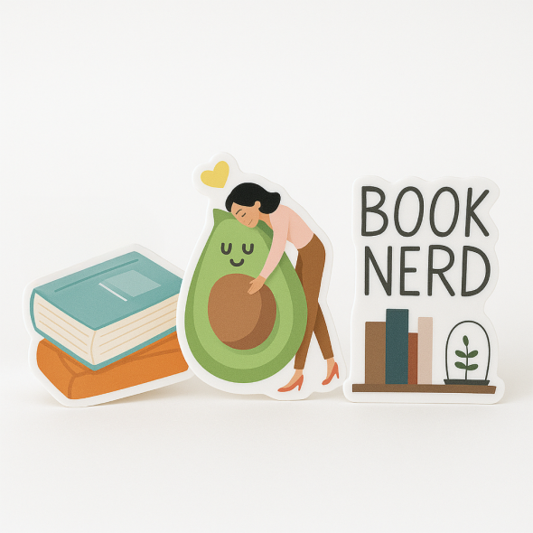 .004 Décalques Formes Spéciales Vinyle Blanc / adhésif repositionnable pour usage intérieur (1 à 4 pouces carrés) Quadrichromie