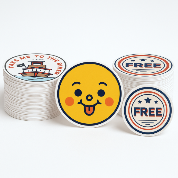 .004 Décalques Formes Spéciales Vinyle Blanc / adhésif std pour usage intérieur (1 à 4 pouces carrés). Quadrichromie numérique haute résolution, toutes marges perdues.