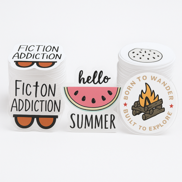 .004 Décalques Formes Spéciales Vinyle Transp. / endos adhésif haute performance pour usage intérieur (1 à 4 pouces carrés) Quadrichromie