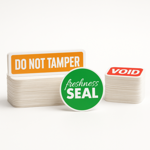 .003 Décalques Formes Spéciales en Vinyle Blanc Destructible / adhésif haute performance (1 à 4 pouces carrés). Sérigraphiés à 76 lpp, toutes marges perdues. 1 couleur PMS spéciale incluse.