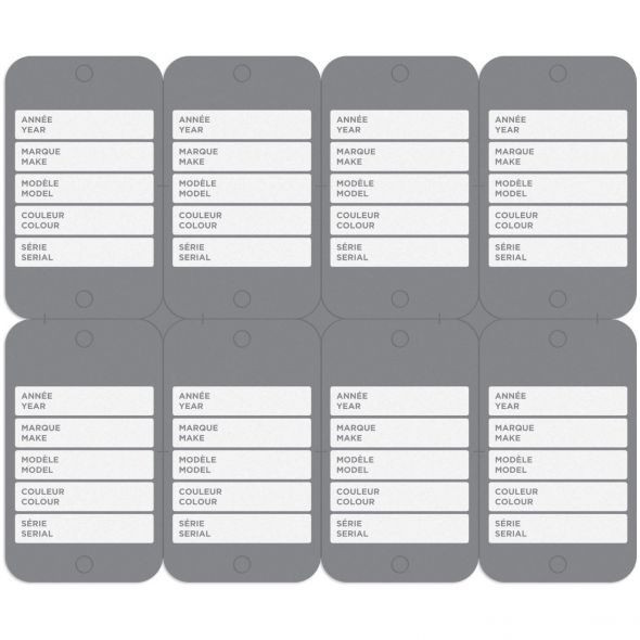 Étiquette Polyéthylène de couleur (1.5" x 2.5") pour concessionnaire automobile, sérigraphié en blanc au recto et au verso