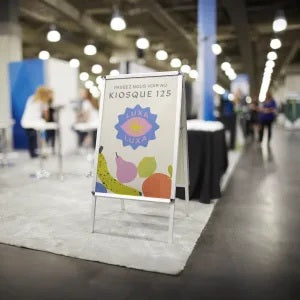 Captez l’attention de tout le monde sur votre trottoir ou votre devanture de magasin avec des panneaux sur pied personnalisés. Structure pliable en aluminium avec encarts en plastique ondulé.